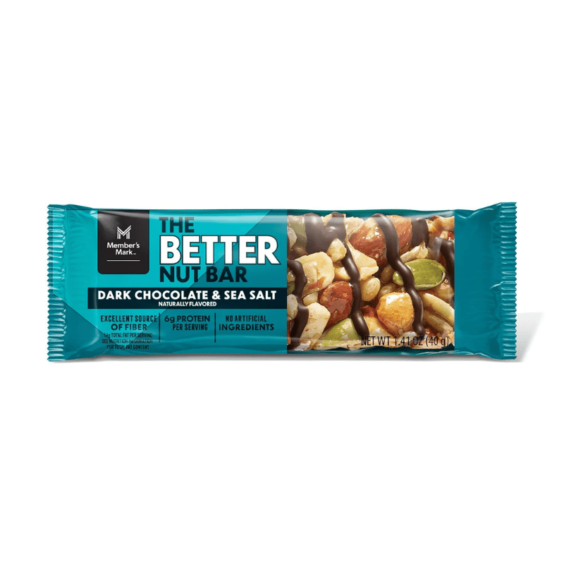 The Sam's Club exclusive Member's Mark™ The Better Nut Bar is the bar you want to be eating when you’re craving something delicious but healthy. It's a bar packed with protein and fiber, so you'll get the energy you need without a sugar crash. Without any artificial ingredients, GMOs or gluten, this bar is a snack you can feel good about giving to your family and friends, too. Satisfies Sweet and Savory Cravings Have you ever had to choose between a sweet or savory snack? Have you ever had a craving for almonds, cashews and walnuts? You no longer have to choose. Sam's Club has outdone themselves once again. Introducing the newly developed Member's Mark Nut Bar. It's truly the BETTER Nut Bar. This bar is packed to perfection with not only almonds, cashews and walnuts but also with a unique blend of pumpkin and sunflower seeds. The Dark Chocolate Drizzle will satisfy any chocolate cravings while giving you all the nutty options you desire. Healthy Snacking for the Entire Family Giving the family a snack that tastes good and one that is good for you is always a challenge. Not only is Member's Mark Nut Bar gluten free but it's also non-GMO. If you're looking for artificial ingredients, you won’t find them here. There are no artificial ingredients in this bar and it is an excellent source of fiber. Snacking and sharing has never been easier. Enough for Every Day and Beyond With 24 – 1.41-ounce bars included in every box, there are plenty of Member's Mark Nut Bars to bring to the office and for all the after-school activities, and still have leftovers for you to enjoy after a long day. Grab a couple on your next road trip, camping trip or even flight to curb unexpected hunger. It’s a snacking choice you’ll never regret.